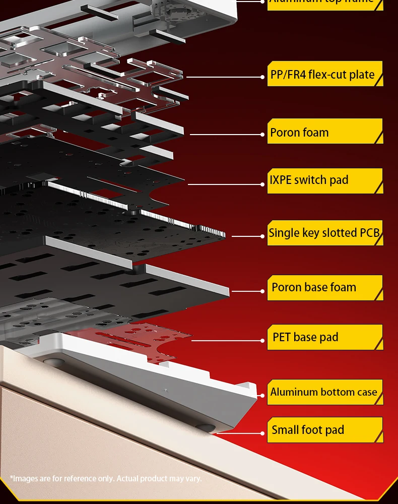 PO cotton + IXPE shaft pad + PET gasket + single-button PCB + PO cotton + PET bottom pad