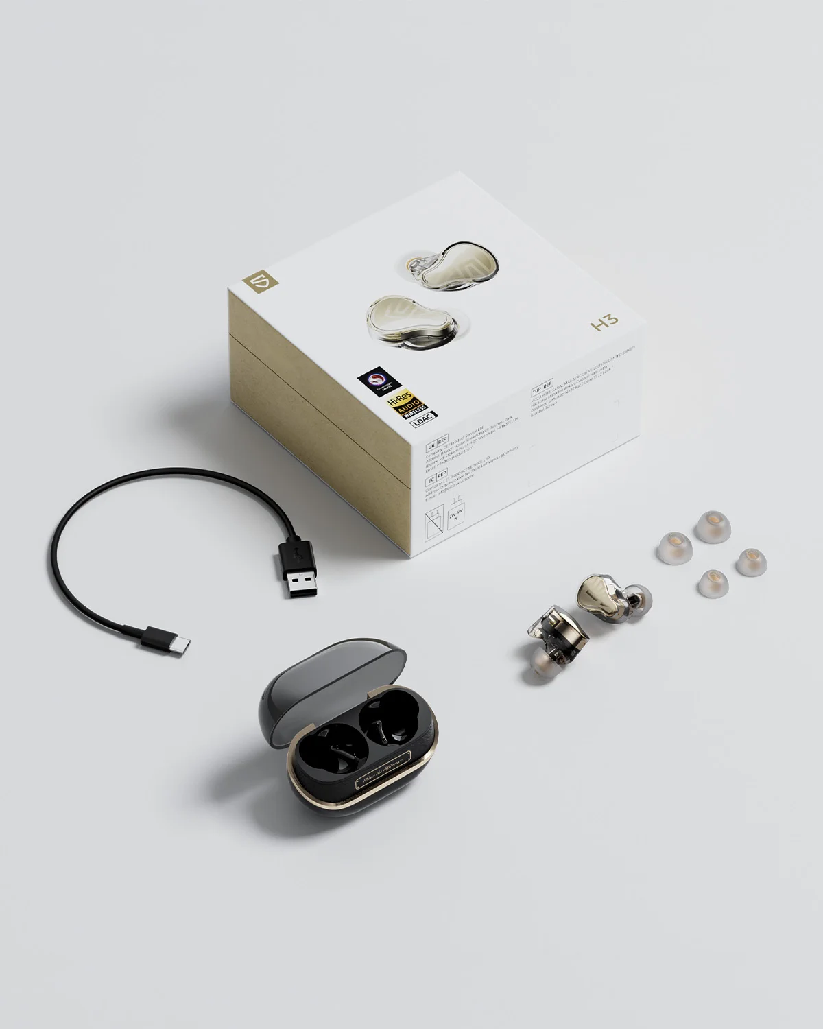 The H3 utilizes a classic triple-driver acoustic structure in each earbud: one dynamic driver and two balanced armatures. A custom 12mm biological diaphragm dynamic driver with a powerful magnetic circuit delivers punchy low and mid-low frequencies, while two balanced armatures handle mid-highs and crisp highs. With precisely tuned crossover points and expert acoustic calibration, the H3 achieves a smooth frequency response, phase coherence, and seamless tonal integration. Enjoy rich, emotionally expressive midrange and smooth, brilliant highs without any harshness.