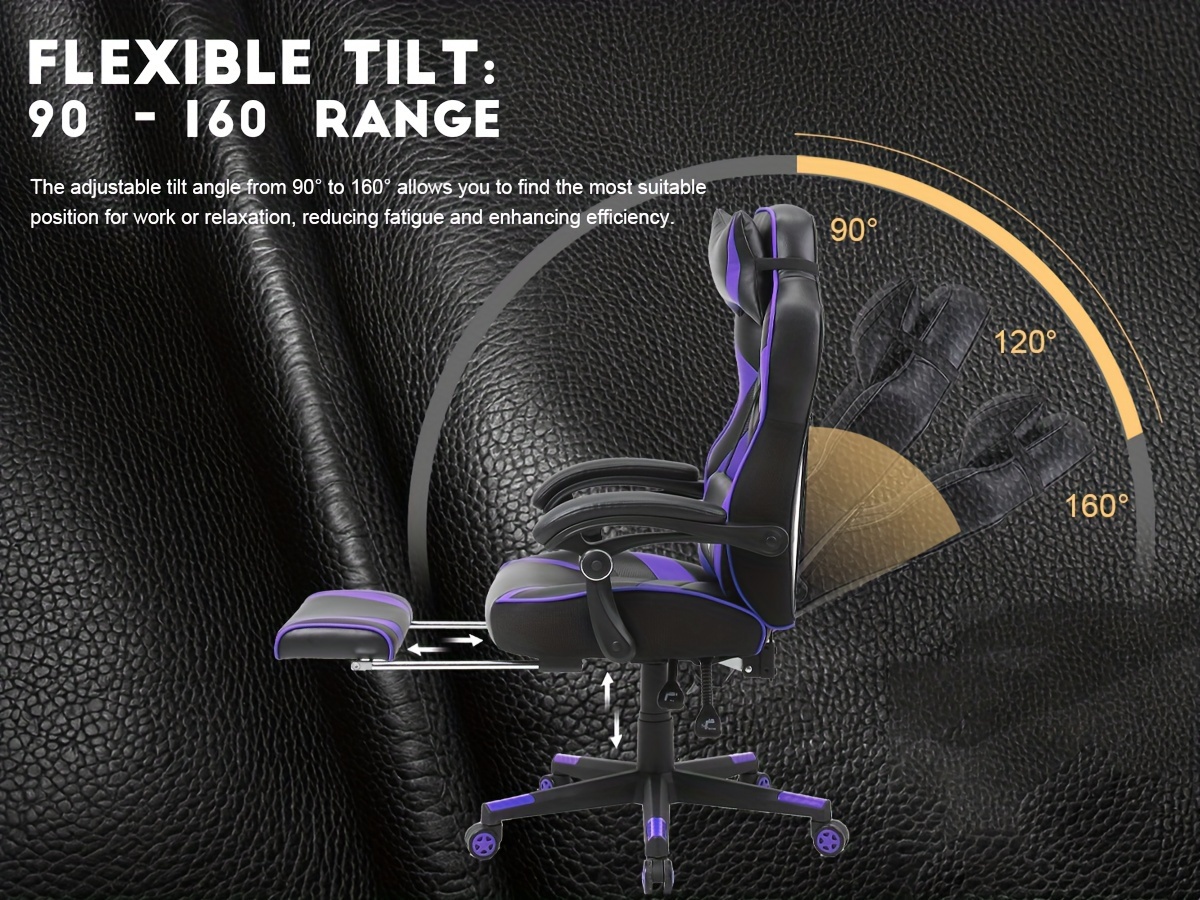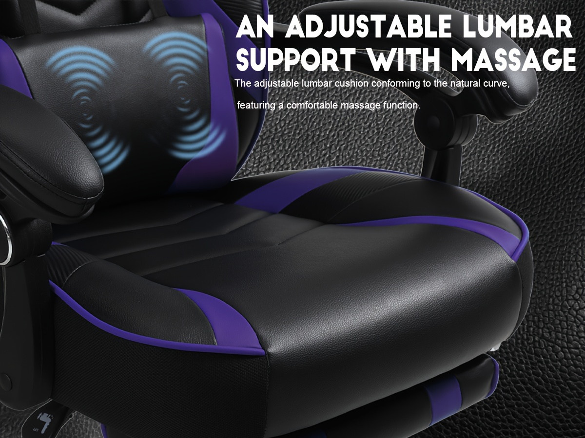 Computer Chair Brings Comfort And Relaxation: The Big And Tall Gaming Chair Is Equipped With An Adjustable Headrest,providing Enhanced Support For The Neck And Head.The Adjustable Lumbar Support Of The Gaming Chair With Massage Comes With A Built-in Massage Function,enabling You To Fully Relax.What's More,the Gaming Chair With Footrest Offers An Extra Level Of Comfort,making It The Perfect Choice For Prolonging Both Gaming And Working Sessions.